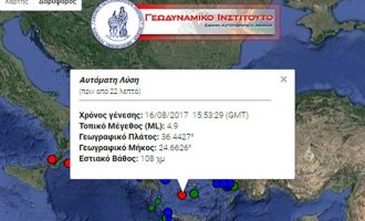 Ισχυρός σεισμός μεγέθους 4,9 Ρίχτερ σημειώθηκε ώρα 18:53 το απόγευμα της Τετάρτης με επίκεντρο τη θαλάσσια περιοχή ανάμεσα σε Μήλο,…