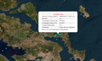 Σεισμός της τάξης των 4 βαθμών της κλίμακας Ρίχτερ σημειώθηκε λίγο πριν τις 9 το βράδυ της Παρασκευής 8/8 στην…