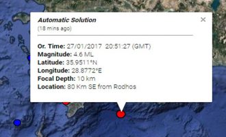 Σεισμός 4,6 Ρίχτερ ανατολικά της Ρόδου
