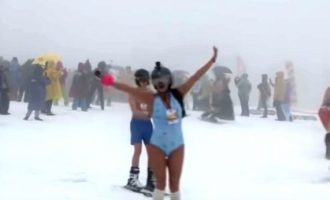 Ρωσίδες βάζουν τα μαγιό τους και κάνουν σκι για χάρη του Ρεκόρ Γκίνες (φωτο+βίντεο)