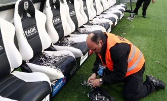 Τελικά… γαύρο πέταξαν οι οπαδοί του ΠΑΟΚ στον πάγκο του Ολυμπιακού στην Τούμπα λίγο πριν την έναρξη του αγώνα για…