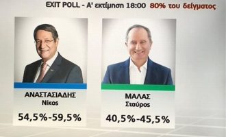 Κύπρος Exit Poll: Προηγείται ο Αναστασιάδης με 54,5%-59,5%