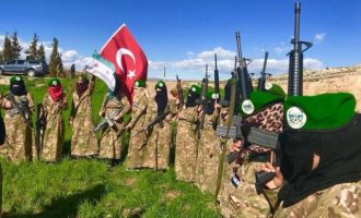 Τζιχαντίστριες, με ισλαμικές μπούρκες παραλλαγής και με καλυμμένα τα πρόσωπα με μαντίλες, ποζάρουν υπερήφανα με την τουρκική σημαία στη βόρεια…