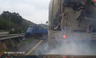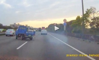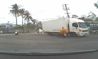 Ο οδηγός του φορτηγού στην Ταϊβάν στρίβει σαν… έλληνας. Ο οδηγός της μηχανής δεν προλαβαίνει να αντιδράσει πέφτει πάνω στο…