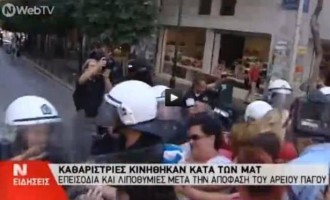 Προσέξτε τον τίτλο στο ρεπορτάζ της ΝΕΡΙΤ για τις καθαρίστριες του υπουργείου Οικονομικών: “Καθαρίστριες κινήθηκαν κατά των ΜΑΤ”! Η φωτογραφία…