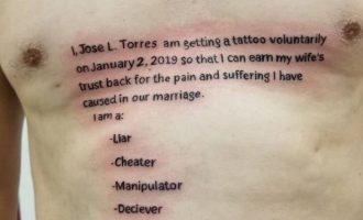 Έκανε τατουάζ στο στήθος του την υπόσχεση ότι δεν θα πάει ποτέ ξανά με άλλη γυναίκα