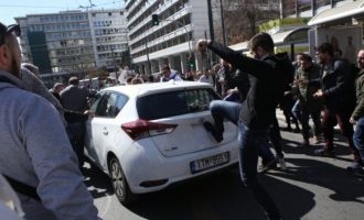 Οργισμένοι οδηγοί ταξί απειλούν να λιντσάρουν και σπάνε αυτοκίνητο της Uber στο Σύνταγμα (βίντεο)