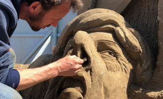 Γιγαντιαίο γλυπτό από άμμο αποκαλύφθηκε στο Φεστιβάλ του Γουέστον σούπερ Μέιρ, στη νοτιοδυτική Αγγλία. Εικονίζει το κεφάλι της πρωθυπουργού Τερέζα…