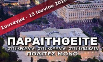 «Ούτε χρώματα, ούτε κόμματα» τιτλοφορείται το κάλεσμα του… αυθόρμητου κινήματος των «Παραιτηθείτε». Συνεπώς, «μόνο πολίτες», όπως αναφέρουν στην ιστοσελίδα τους….