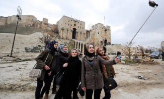 Μια παρέα νεαρές κοπέλες από τη Δαμασκό ταξίδεψαν μέχρι το Χαλέπι για να βγάλουν φωτογραφίες στην απελευθερωμένη από τους τζιχαντιστές…