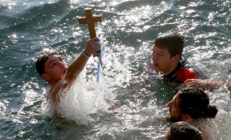 13χονος ανέσυρε τον Τίμιο Σταυρό στα παγωμένα νερά της Θεσσαλονίκης