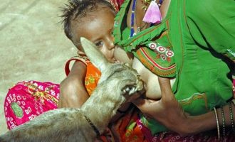 Γυναίκα θηλάζει το μωρό της και ελάφι ταυτόχρονα!