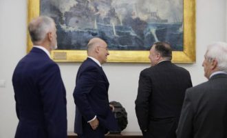 Υστερία στην Τουρκία από τη φωτογραφία του Αμερικανού υπουργού Εξωτερικών Μάικ Πομπέο να κοιτά τον πίνακα «To θωρηκτό Αβέρωφ» του…