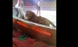 Λιοντάρι και τίγρης ορμούν σε άλογο για να το κατασπαράξουν μέσα σε τσίρκο (βίντεο)