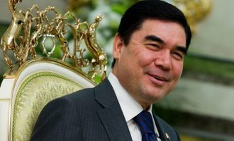 Ο εκκεντρικός πρόεδρος του Τουρκμενιστάν, Κουρμπανγκουλί Μπερντιμουχαμέντοφ, που διοικεί τη χώρα από το 2006, κάνει… άρση βαρών με μια μπάρα…