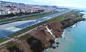 Τουρκία: Αεροπλάνο «γλίστρησε» από τον διάδρομο προσγείωσης και βρέθηκε στον γκρεμό (φωτο+βίντεο)