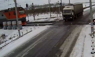 Δύο τρένα διαλύουν φορτηγό σε διάβαση (βίντεο)