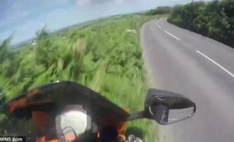 Τρομακτικό είναι το βίντεο που δείχνει τη στιγμή που ένας μοτοσυκλετιστής εκτοξεύεται στον αέρα όταν χάνει τον έλεγχο της μηχανής…