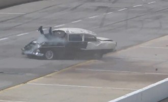 Ένα ίσως από τα πιο τρελά ατυχήματα με αυτοκίνητο καταγράφει το βίντεο που αναρτήθηκε στο διαδίκτυο και δείχνει οδηγό αγώνων…