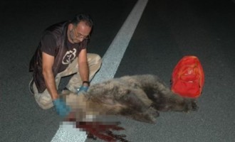 Σκληρή εικόνα: Ατύχημα με θύμα αρκούδα στην Εγνατία
