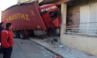 ΦΩΤΟ: Νταλίκα καρφώθηκε σε σπίτι στην Σπάρτη!