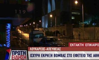 Ισχυρή έκρηξη βόμβας σημειώθηκε λίγα λεπτά μετά τις 3 τα ξημερώματα στο Εφετείο Αθηνών στην οδό Λουκάρεως. Είχε προηγηθεί προειδοποιητικό…