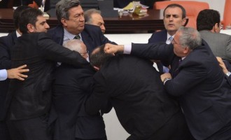 Για δεύτερη φορά μέσα σε μία μόλις εβδομάδα βουλευτές στην Τουρκία μετατρέπουν για το ίδιο νομοσχέδιο τη Βουλή σε… ρινγκ….