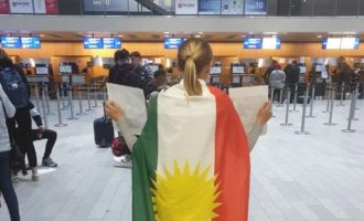 Σουηδέζα ακτιβίστρια φόρεσε μια κουρδική σημαία και στάθηκε μπροστά στο γκισέ αναχωρήσεων των Τουρκικών Αερογραμμών σε αεροδρόμιο της χώρας της,…