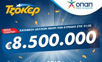 Στα 8,5 εκατ. ευρώ το mega τζακ ποτ του ΤΖΟΚΕΡ – Κατάθεση δελτίων έως τις 21.30