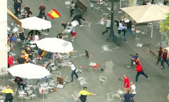 Διαδηλωτές πλακώθηκαν στο ξύλο σε κεντρικό δρόμο της Βαρκελώνης (βίντεο)