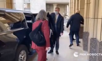 Για «εποικοδομητικές συναντήσεις με τους συναδέλφους από το ΥΠΕΞ της Ρωσίας» έκανε λόγο η Βικτώρια Νούλαντ (με κόκκινο ταγέρ στην…