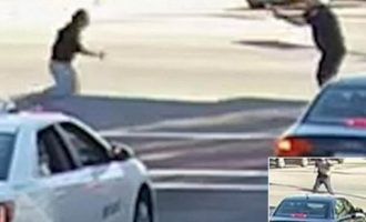 Κάμερα ασφαλείας σε κεντρικό δρόμο της Βοστόνης στις Ηνωμένες Πολιτείες καταγράφει τη στιγμή που αστυνομικός πυροβολεί και τραυματίζει θανάσιμα άνδρα…