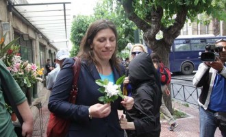 Η έξοδος της Προέδρου της Βουλής, Ζωής Κωνσταντοπούλου στο πεζοδρόμιο για να επιβάλει την… τάξη στα όργανα της Τάξης συνοδεύθηκε από…
