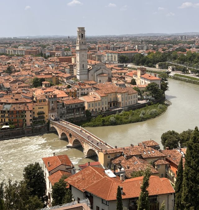 Μετά από ένα ξέγνοιαστο περπάτημα στα πανέμορφα γραφικά σοκάκια της πόλης, φτάσαμε στην Ponte Pietra, και αντικρίσαμε μια πανέμορφη θέα προς όπου και αν κοιτάζαμε.