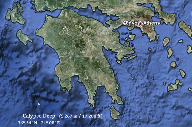 Η υποθαλάσσια άβυσσος, όπου βρίσκεται το βαθύτερο σημείο της Μεσογείου, λόγω των πολλών ναυαγίων που έχουν σημειωθεί μπορεί να χαρακτηριστεί ως το αντίστοιχο ελληνικό Τρίγωνο των Βερμούδων