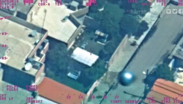 Το άγνωστο ιπτάμενο αντικείμενο, που έμοιαζε με σφαίρα, φαίνεται στη διαβαθμισμένη εικόνα που αποκαλύφθηκε για πρώτη φορά στο podcast «Weaponized» από τον ερευνητή UFO Τζέρεμι Κόρμπελ και τον δημοσιογράφο Τζορτζ Κναπ που απέκτησαν την εικόνα, ανέφερε η Daily Mail.