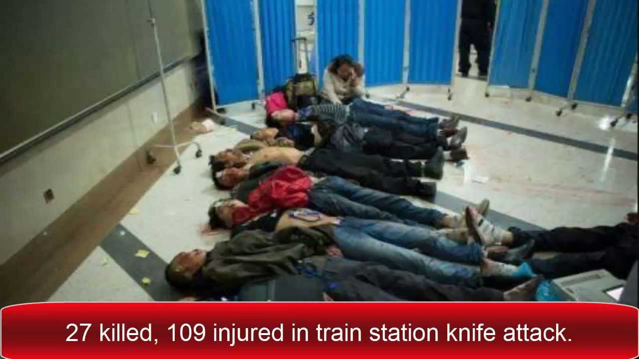 27 άνθρωποι σκοτώθηκαν και 109 τραυματίστηκαν σε επιθέσεις με μαχαίρια σήμερα σε ένα σιδηροδρομικό σταθμό στα νοτιοδυτικά της Κίνας, μετέδωσε το πρακτορείο Νέα Κίνα.