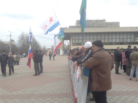 Στην Πλατεία Λένιν της Συμφερόπολης, πρωτεύουσας της Κριμαίας, έχουν αρχίσει και συγκεντρώνονται φιλορώσοι διαδηλωτές.