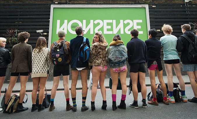 Η φετινή ημέρα χωρίς παντελόνια στο Μετρό θεωρείται πως είχε την μεγαλύτερη συμμετοχή στην ιστορία του θεσμού. Αν και οι θερμοκρασίες ήταν εξαιρετικά χαμηλές, εκατοντάδες νέοι σε Νέα Υόρκη, Λονδίνο, Βερολίνο και Ιταλία εμφανίστηκαν με το εσώρουχο τους στον σταθμό του μετρό και συμμετείχαν σε αυτή την καθαρά ψυχαγωγική δράση.