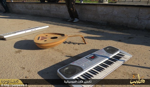 Η θρησκευτική αστυνομία που έχει συστήσει το Ισλαμικό Κράτος έδειρε πλανόδιους μουσικούς και τους κατέστρεψε τα όργανα ως τιμωρία γιατί έπαιζαν μουσική με το “μη-μουσουλμανικό” αρμόνιο.