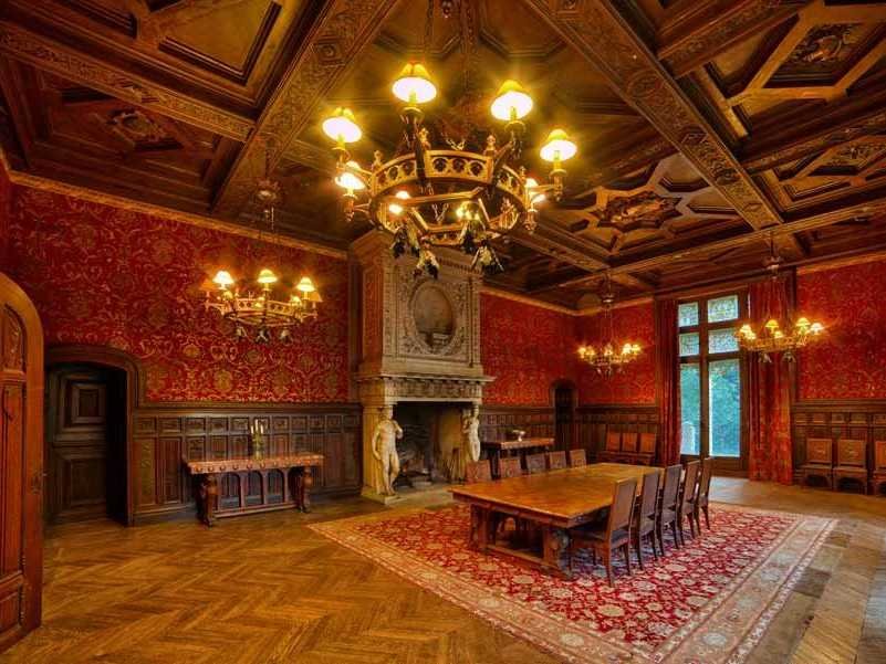Το εσωτερικό είναι τόσο πολυτελές όσο θα περίμενε κανείς να είναι ένα αρχοντικό του 16ου αιώνα. Ένα πρωτότυπο σκαλιστό τζάκι διαθέτει και μεσαιωνική κορυφή.