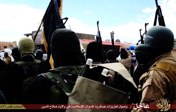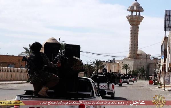Φωτογραφίες που αναρτήθηκαν την Τετάρτη στο Twitter από το Ισλαμικό Κράτος δείχνουν πομπή αυτοκινήτων με τζιχαντιστές που ξεκίνησε από την πόλη Κιρκούκ και κινείται νότια για να ενισχύσει τις δυνάμεις του Ισλαμικού Κράτους που υπερασπίζονται την Τικρίτ.
