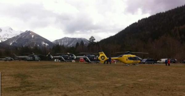 Στο σημείο της συντριβής, το οποίο βρίσκεται σε εξαιρετικά δύσβατο μέρος των Άλπεων, έσπευσαν αμέσως ισχυρότατες δυνάμεις της Πυροσβεστικής με τη συνδρομή ελικοπτέρων.