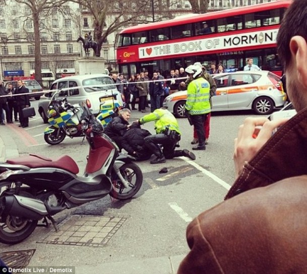 Ο ύποπτος κρατείται σε αστυνομικό τμήμα του Λονδίνου ενώ οι υπόλοιποι τη συμμορίας διέφυγαν προς την πλατεία Belgrave.
