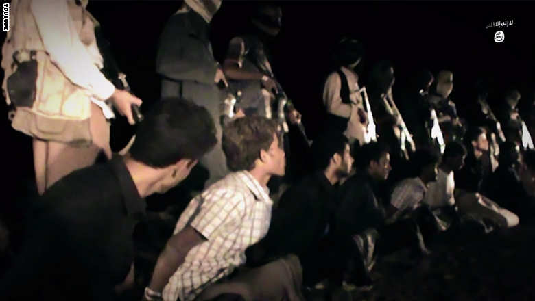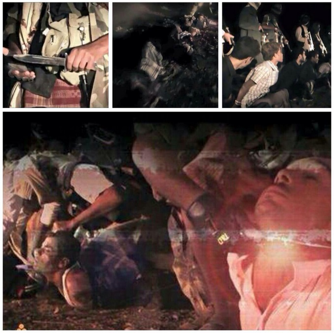 Οι τζιχαντιστές αποκεφαλίζουν τέσσερα από τα θύματά τους, ενώ οι υπόλοιποι έντεκα, που κάθονται στο έδαφος με δεμένα τα μάτια και τα χέρια, δέχονται έναν πυροβολισμό ο καθένας και πέφτουν νεκροί.
