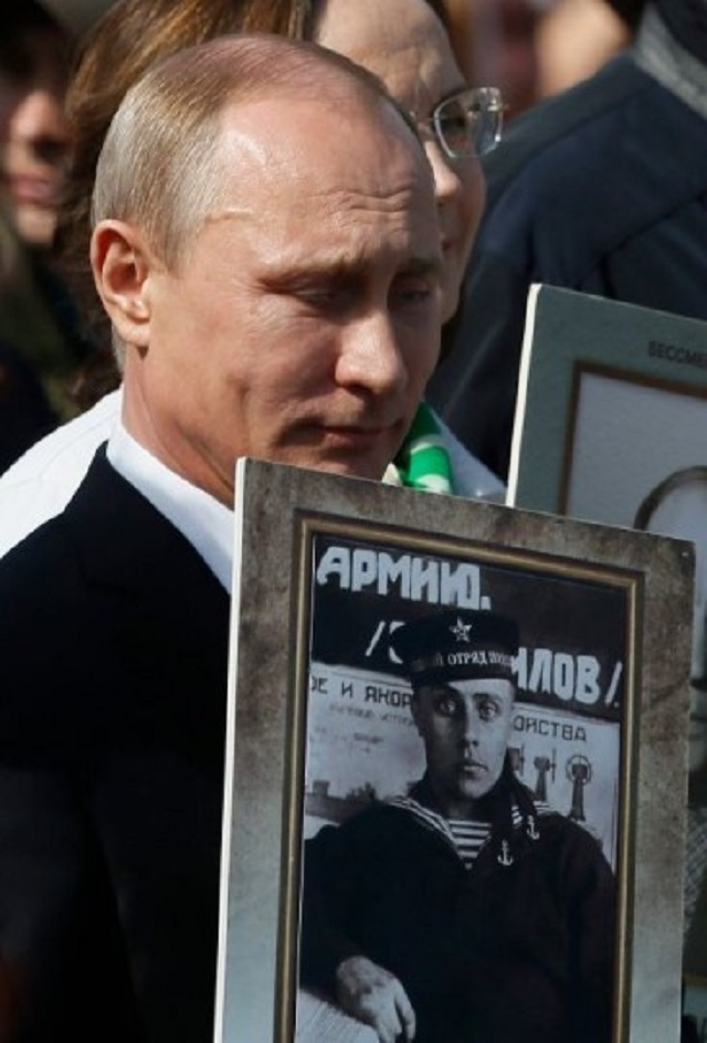 Με μια φωτογραφία του πατέρα του στα χέρια και με δάκρυα στα μάτια ο Ρώσος Πρόεδρος Βλαντιμίρ Πούτιν παραβρέθηκε σ τους εορτασμούς για την 70η επέτειο από τη νίκη της Ρωσίας επί της ναζιστικής Γερμανίας, που πραγματοποιήθηκαν στην Κόκκινη πλατεία στη Μόσχα.