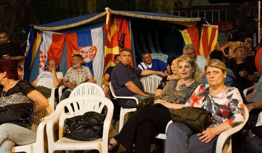 Το πολυεθνικό μόρφωμα των Σκοπίων. Στις σκηνές που έχουν στήσει οι Σκοπιανοί “αγανακτισμένοι” βλέπουμε να έχουν κρεμάσει σημαίες αλβανικές, σερβικές και σκοπιανές ενώ στην κεντρική φωτογραφία βλέπετε έναν “Μακεδόνα” διαδηλωτή με μπλουζάκι που γράφει “Τουρκία”. Παρά την προσπάθεια αυτοί οι άνθρωποι να ονομαστούν “Μακεδόνες”, οι ίδιοι ξέρουν πολύ καλά τι είναι και από που κρατά η σκούφια τους. Και ύστερα έχουν την απαίτηση από εμάς να αναγνωρίσουμε ως “Μακεδονία” και “Μακεδόνες”, αυτούς που κρατάνε αλβανικές, τουρκικές και σέρβικες σημαίες. Η φάρσα με τα Σκόπια πρέπει επιτέλους κάποια στιγμή να τελειώσει… Ας ονομαστούν με το κανονικό τους όνομα “Βαρντάσκα” να τελειώνουμε και εμείς και αυτοί…