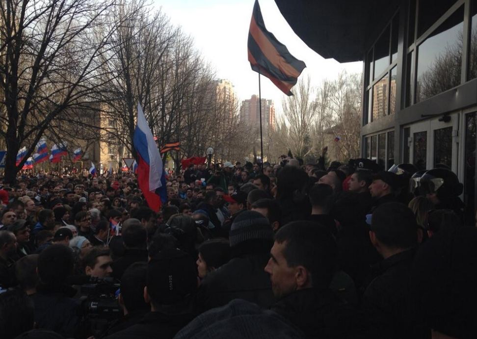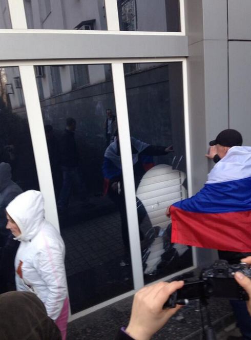 Ομάδα Ρώσων διαδηλωτών έσπασαν τα τζάμια στην κεντρική είσοδο του κτιρίου της αστυνομίας στο Ντονέτσκ της Ουκρανίας.