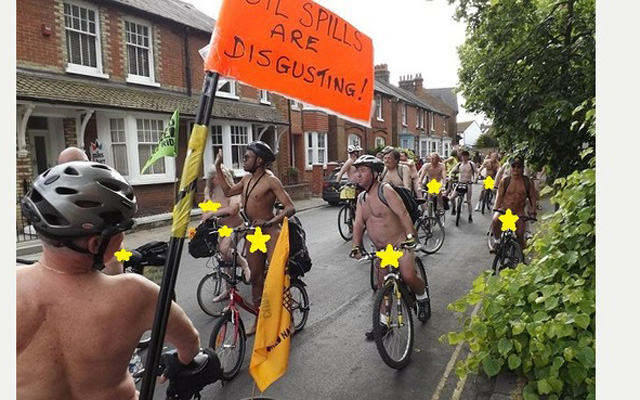 Συνέβη στον ποδηλατικό γύρο World Naked Bike Ride (WNBR) , ο οποίος γινόταν στο Καντέρμουρι του Κεντ, στη Μεγάλη Βρετανία, την Κυριακή.