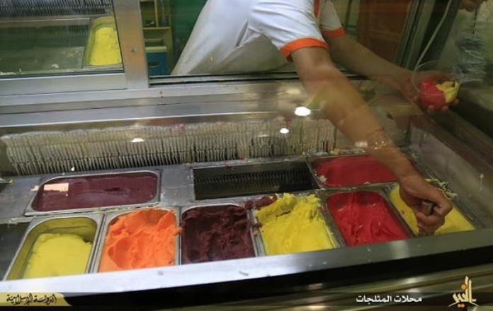 Σε μια σειρά από προπαγανδιστικές εικόνες που ανάρτησαν οι τζιχαντιστές στο διαδίκτυο, βλέπουμε το εργοστάσιο που παράγεται το τζιχαντιστικό παγωτό, το οποίο γίνεται ανάρπαστο μεταξύ του πληθυσμού της Μοσούλης.